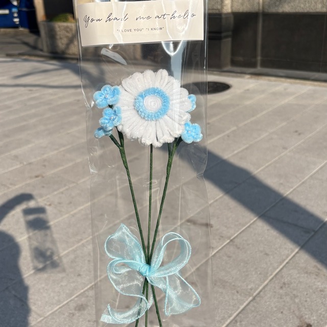 モールのお花をお届けします♪ ⭐︎内容物 ひまわり/ガーベラなどのモールのお花→1本(1100円相当) 苺の小花/マーガレットのモールのお花→2本(1100円相当) 合計3本 とラッピング資材(100円相当) ⭐︎配送 7営業日以内 ⭐︎お願い 色の系統は選べますがお花の種類は選べません。 色を詳しく入れたい時は、注文の際にメモが備考欄にご記載ください。 加えてお花の種類を選びたいときは、ガーベラ、ひまわり希望などと入れてください!! 記載がない時はこちらで可愛く仕上げさせていただきます!